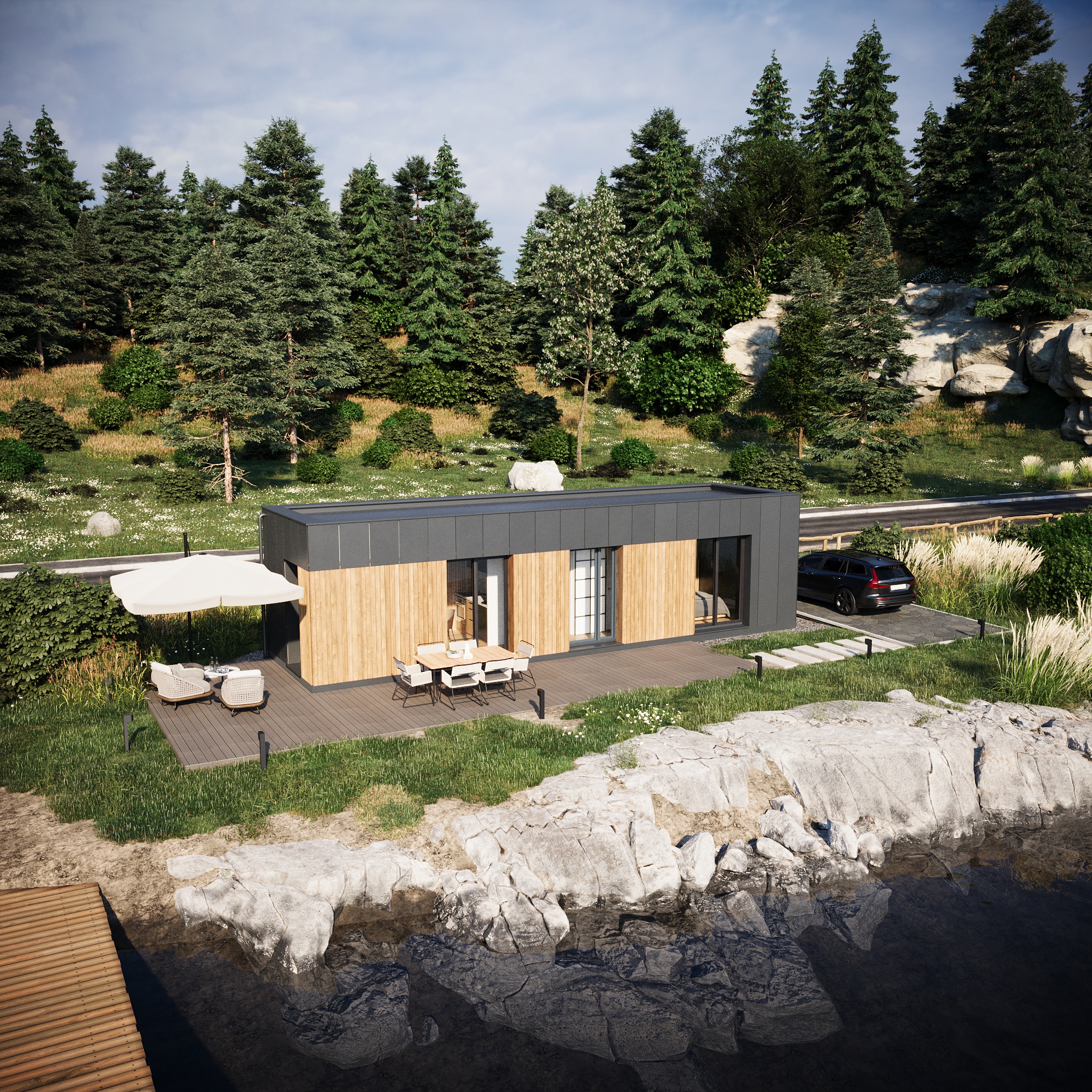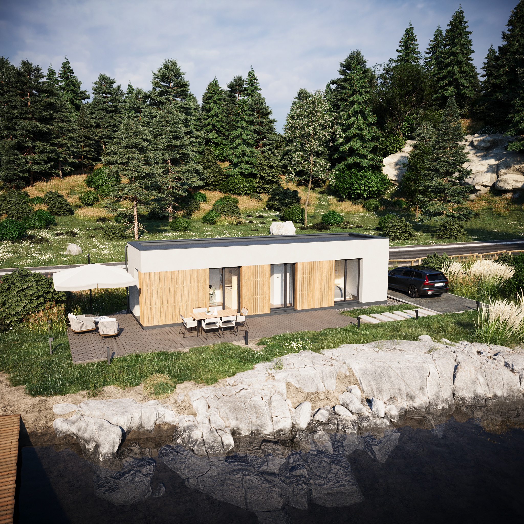 Unsere Wände/Decken/Boden werden mit Holzrahmenbau-Konstruktion in Tafelbauweise zu 100% im Werk industriell gefertigt. Als Dämmstoff benutzten wir Holzfaserdämmplatten, um die besten Energiewerte zu erreichen, wie auch der ökologische Abdruck nicht verloren geht. Mit einer PV-Anlage auf dem Dach, wird Energie+ Zertifizierung erreicht. Möglichkeit der Herstellung einer Fassade mit Materialien wie Holz, Eternit oder Putz. Eine Terrasse mit 10 m² ist bei jedem Modul dabei. Die weitere äussere Erschliessung des Objekts unterliegt individuellen Absprachen (z.B. Pergola, Überdachung, Sauna, Whirlpool und anderes).